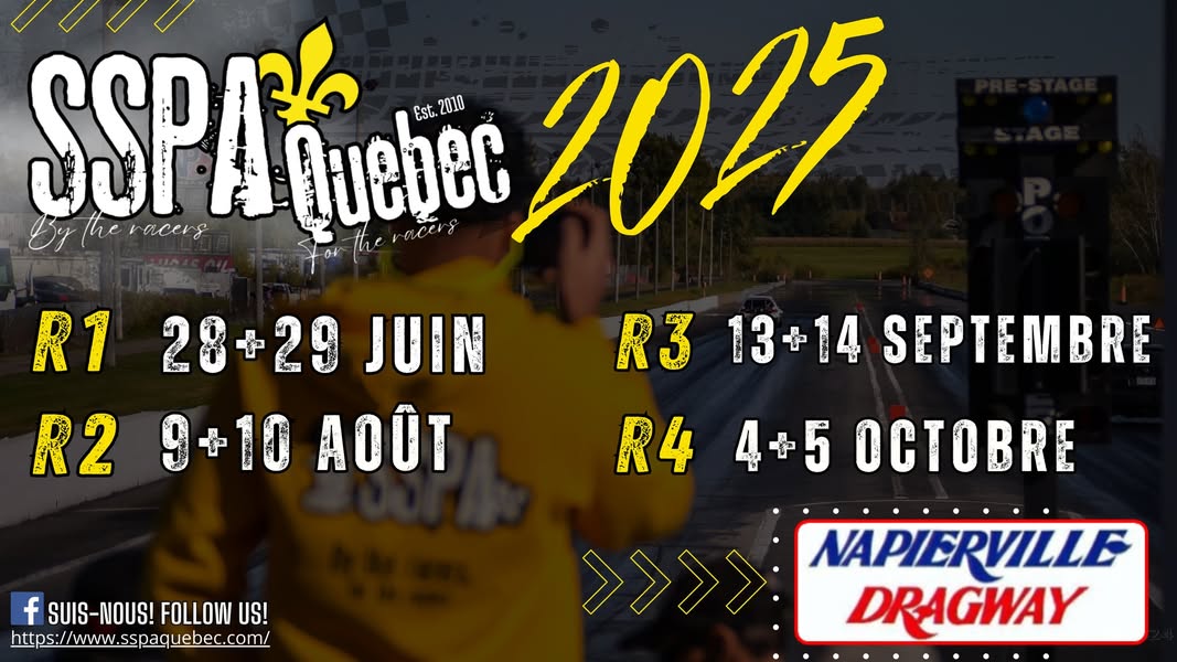 Si vous êtes intéressé à participer à la série de drag SSPA Quebec, assurez-vous de lire le livre des règlements (Rules book in English here) 2025 pour ainsi connaître les spécifications techniques des voitures éligibles pour la série.
